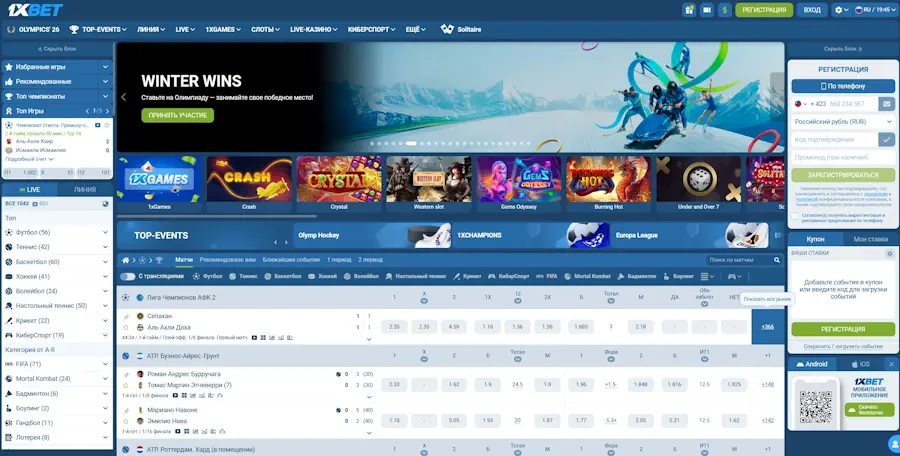Функционал мобильного приложения полностью дублирует веб-версию. Доступны все виды ставок на спорт и киберспорт, онлайн-казино с тысячами слотов, live-игры с дилерами, TV-игры и виртуальный спорт. Интерфейс адаптирован под сенсорные экраны, навигация упрощена для управления одной рукой. Push-уведомления информируют о статусе ставок и специальных акциях.