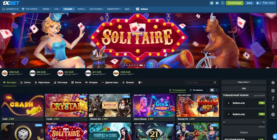 1xGames — раздел с собственными играми платформы: карточный покер, игральные кости, аркады и мини-игры. Виртуальный спорт предлагает симуляции футбольных и теннисных матчей, результаты которых генерируются алгоритмом. Наблюдайте за ключевыми моментами виртуальных игр и делайте ставки на исходы. TV-игры — это аналог классического лото, где покупаете билеты и надеетесь на выпадение выигрышных комбинаций.